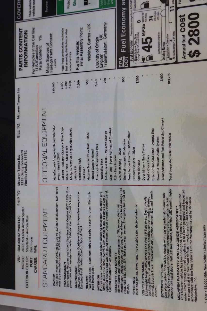 With its stunning good looks, exceptional performance, and cutting-edge technology, the 2026 McLaren Artura is the ultimate expression of automotive excellence. Experience the thrill for yourself by arranging a test drive at our showroom today. We're confident you'll be captivated by this remarkable sports car.